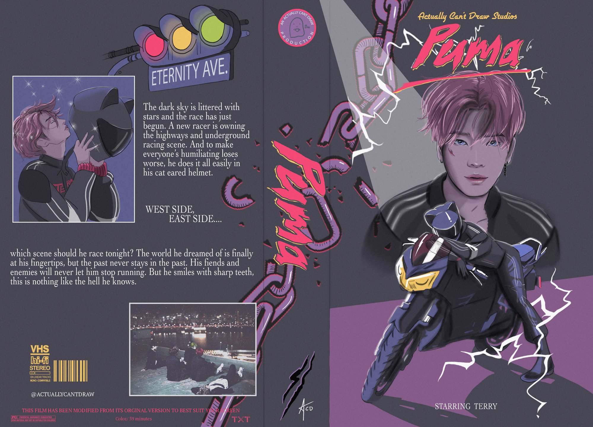 Recycled VHS storage box Puma Tae Race Movie Theme *yes I gave him cute cat ears